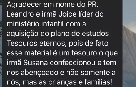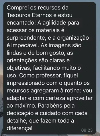 Meu desejo é auxiliar líderes e professores dos ministérios infantis com esse material, que une toda minha experiência na igreja com meu conhecimento e prática na escola. Criei esse material com intenção que todos possam usufruir dos avanços pedagógicos atuais em nossas igrejas, com recursos de qualidade e sem gastar muito tempo no seu preparo.